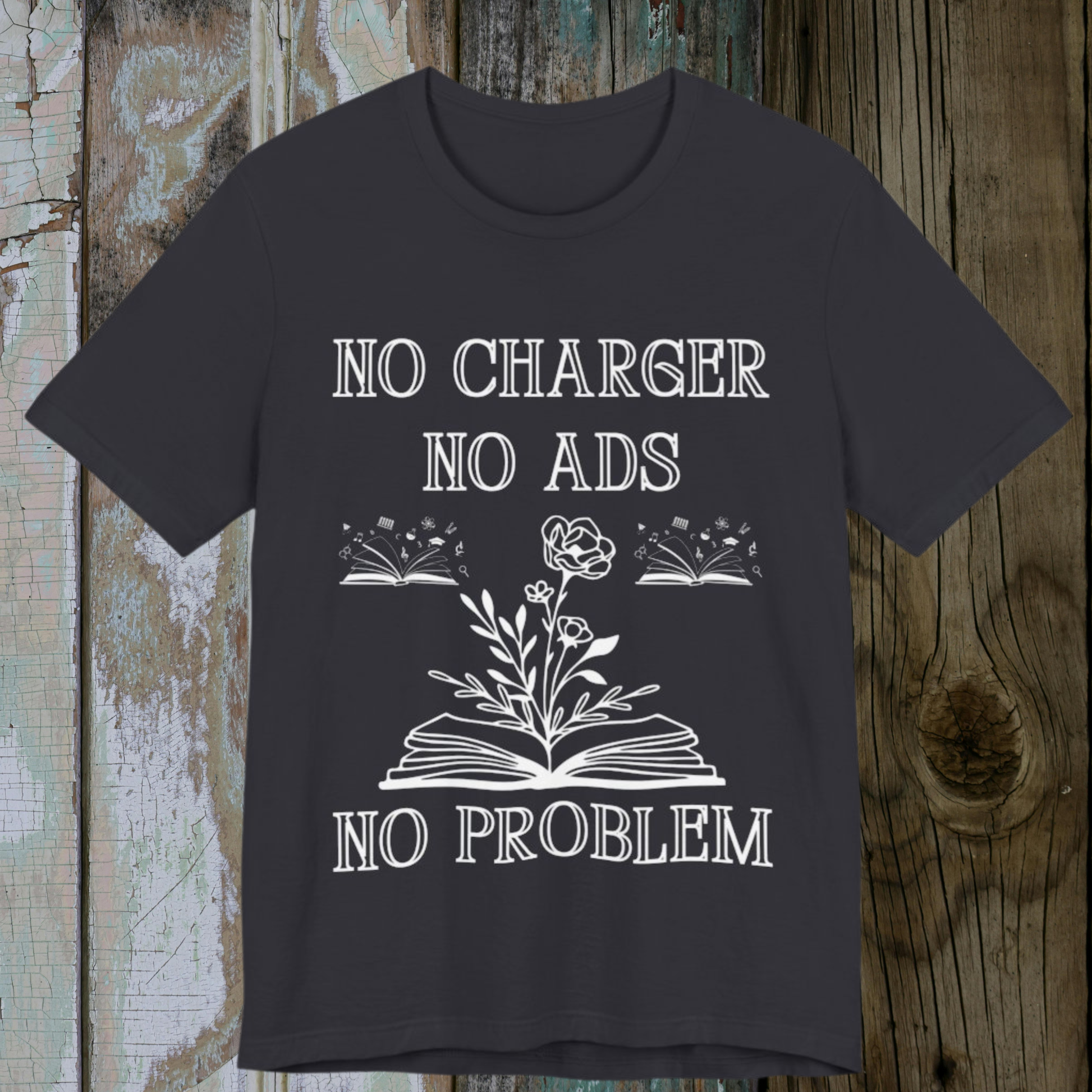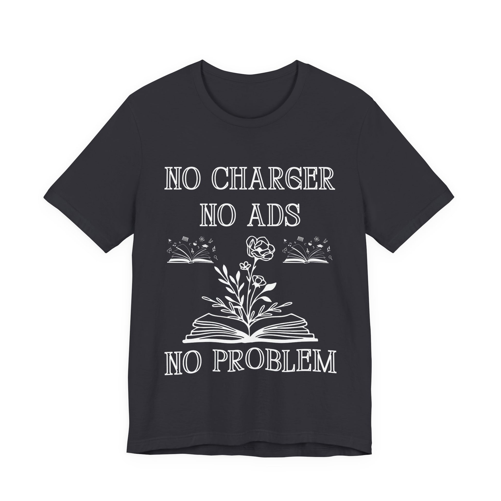 Book Lover T-Shirt - No Charger No Ads No Problem Reading Gift for Bibliophiles