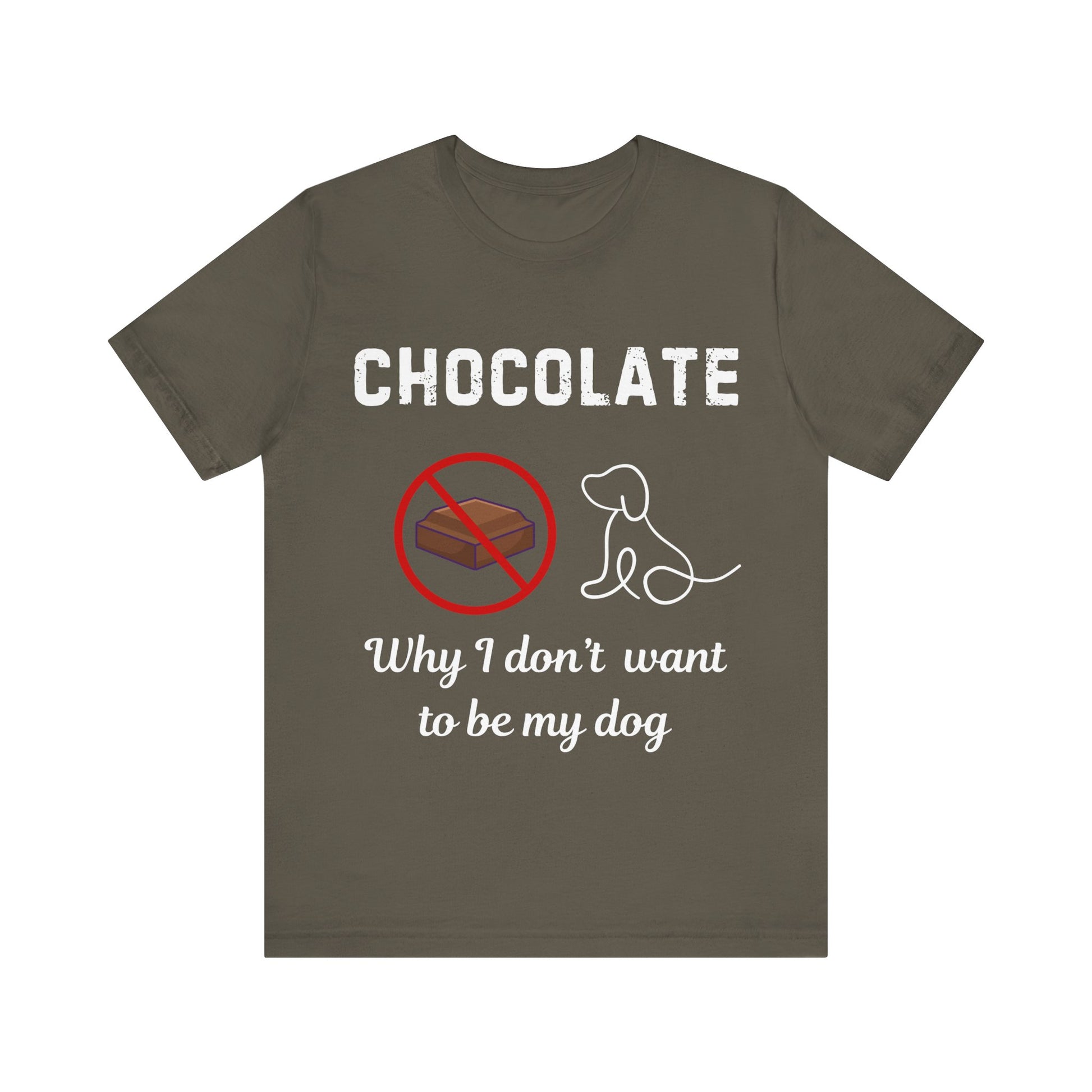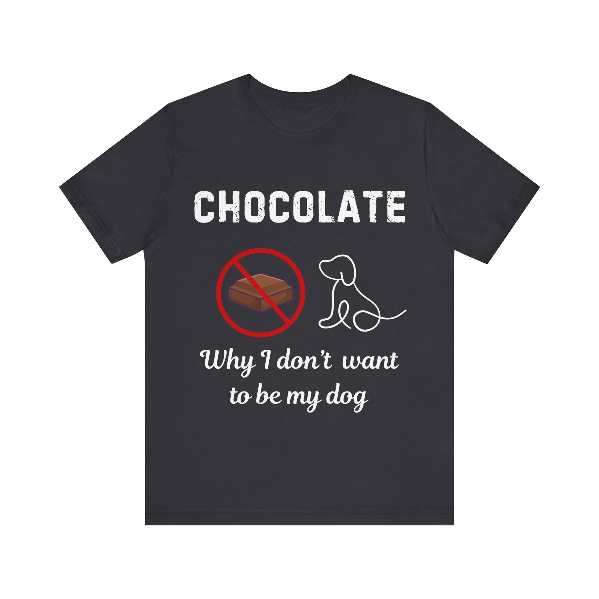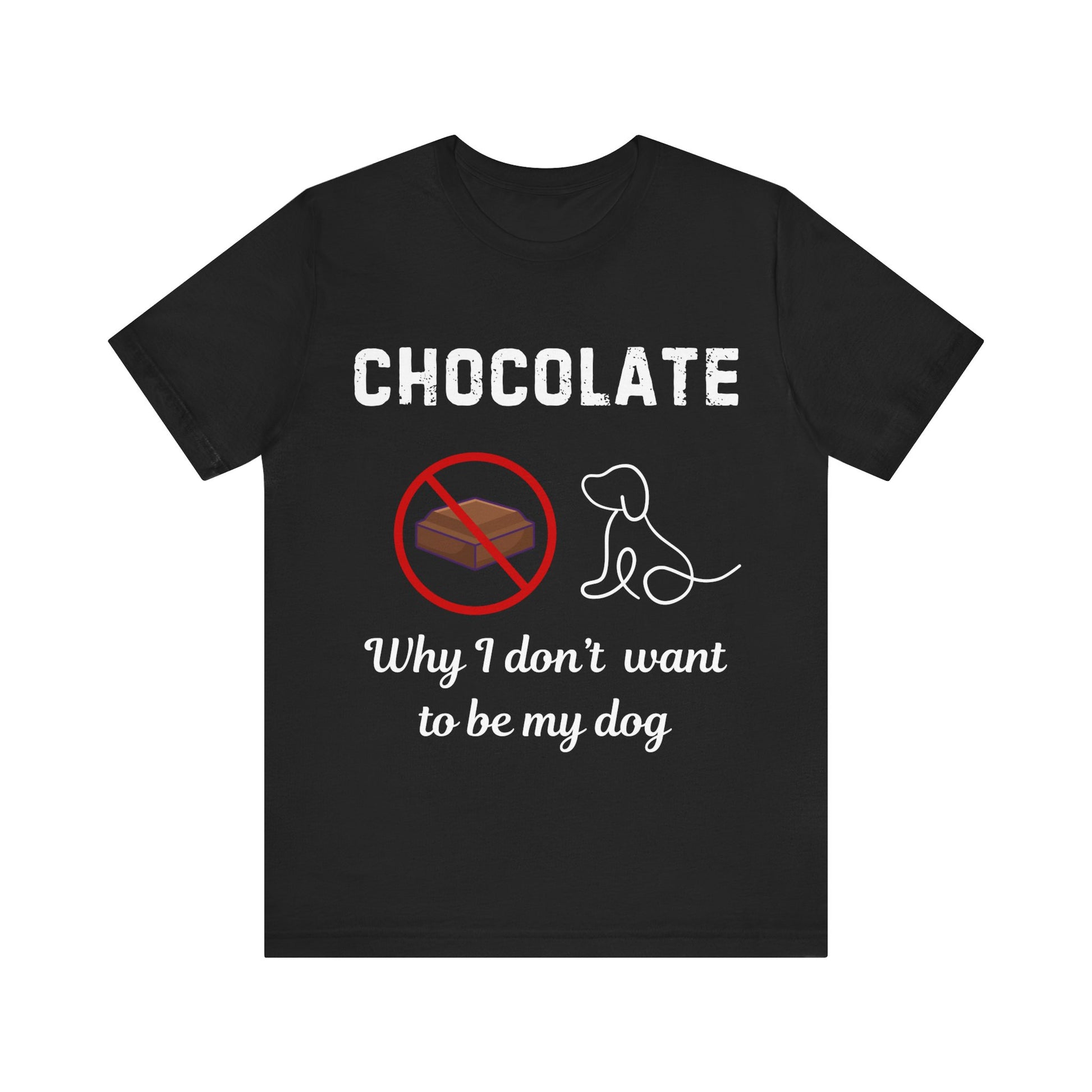 Manufactured in the USA, this cotton unisex t-shirt is the perfectly funny gift for the one who enjoys their chocolate and loves dogs !